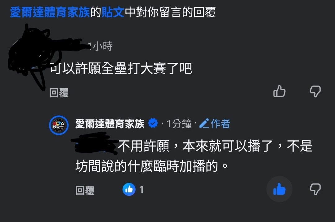 經過愛爾達台灣總代理的努力爭取到轉播權了