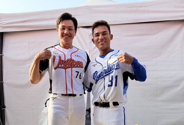 活動開始前,富邦悍將由隊長范國宸領軍,林岱安一同現身,還特地邀請穿著統一獅戰袍