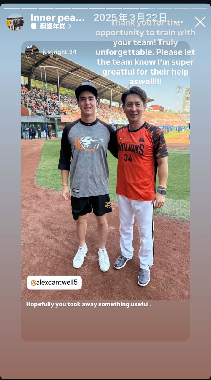 [分享] Alex Cantwell有跟統一練球過