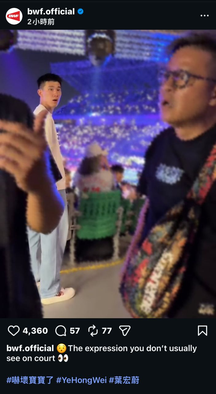 [閒聊] 葉宏蔚吃驚照登上世界羽聯IG