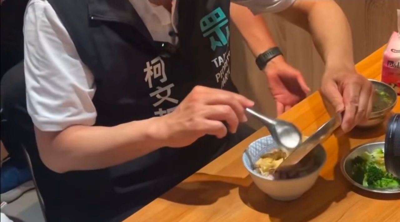 (全新一盤小菜,桌上還有其他好幾個人,直接全部倒進自己碗裡面)