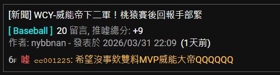 ※ 文章網址: https://www.ptt.cc/bbs/BaseballXXXX/M.1775113579.A.B5D.html