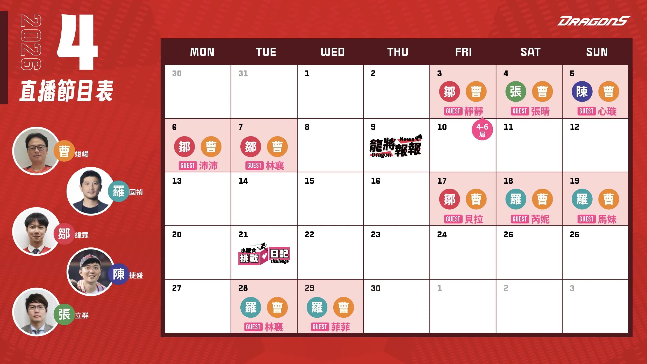 [閒聊] DragonsTV on YT 四月份主播球評班表