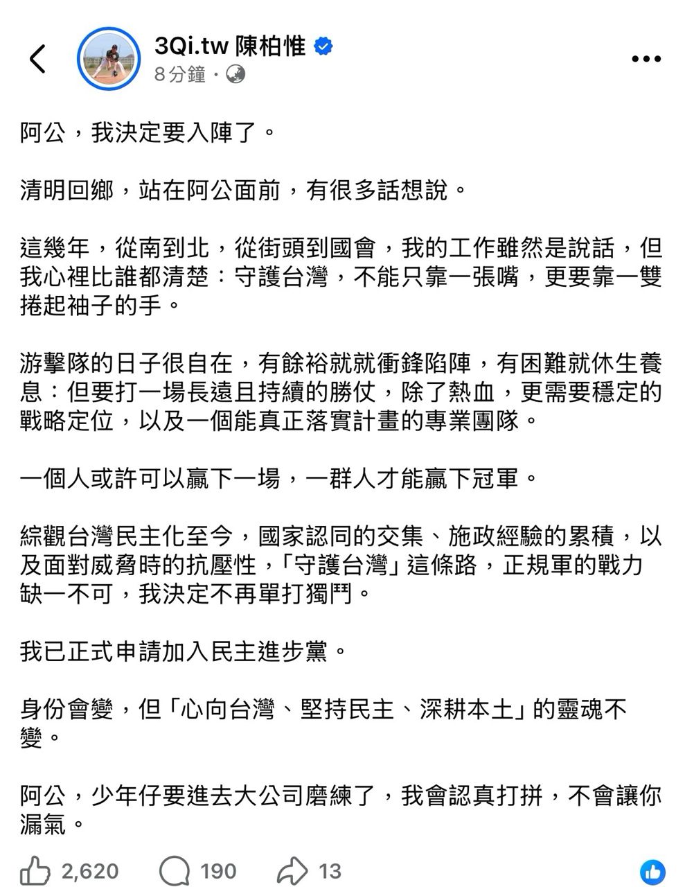 [閒聊] 政治-3Q陳柏惟申請加入民進黨