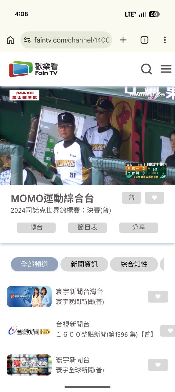這次的台鋼主場網路沒有授權到歡樂看的MOMOTV