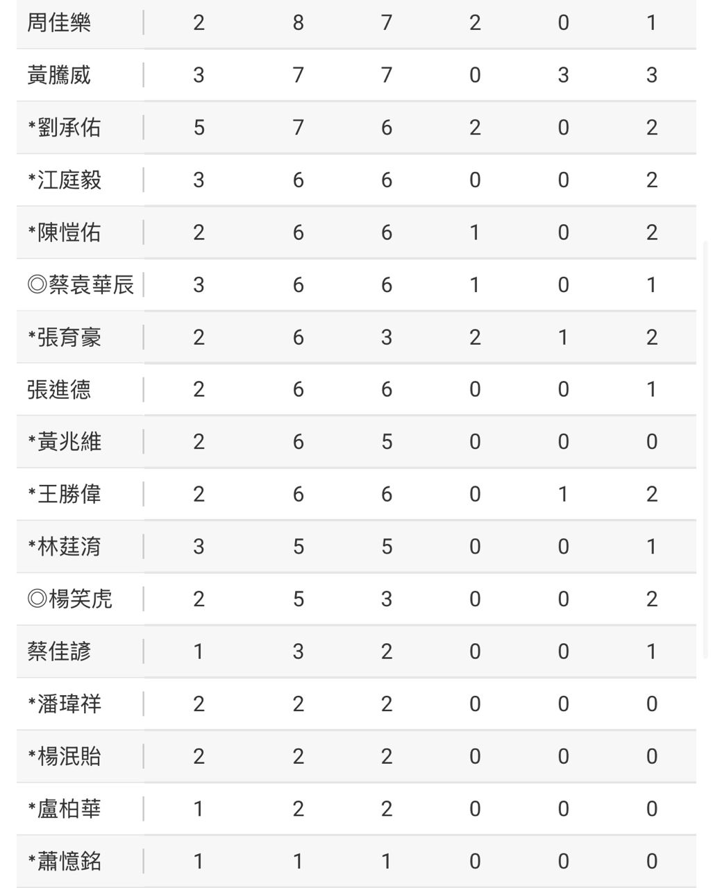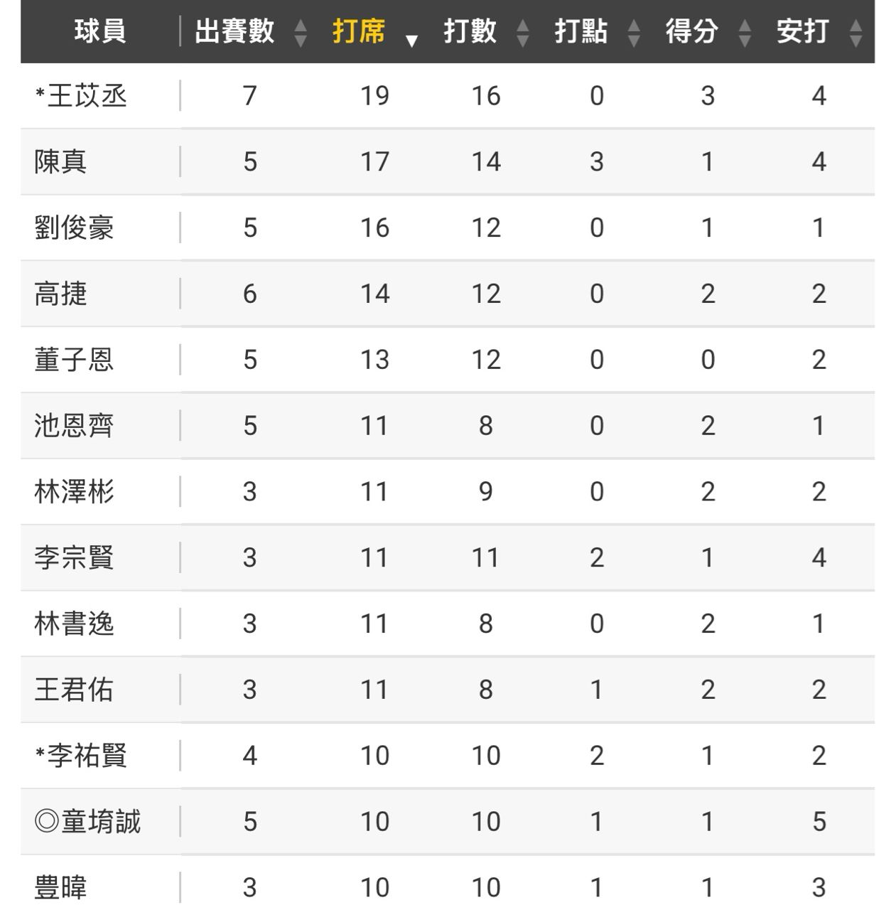 甚至最為重點的張育豪跟劉承佑僅有少少的6、7PA而已(但小樣本的數據都很好看)