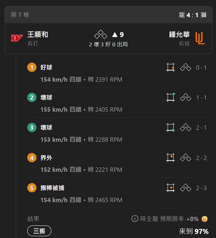 有球速、球種、轉速、進壘點