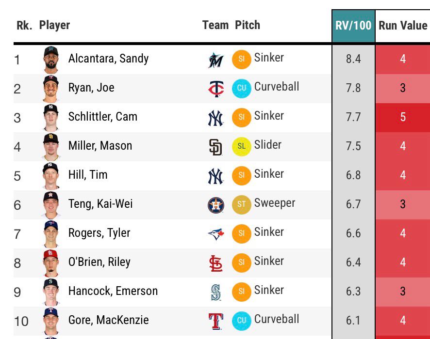 換句話說 鄧愷威今年橫掃球是MLB最好的球種之一 也是聯盟最好的橫掃球