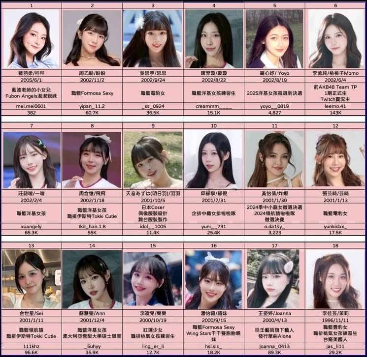 [閒聊] 樂天女孩18人徵選名單(進行中)