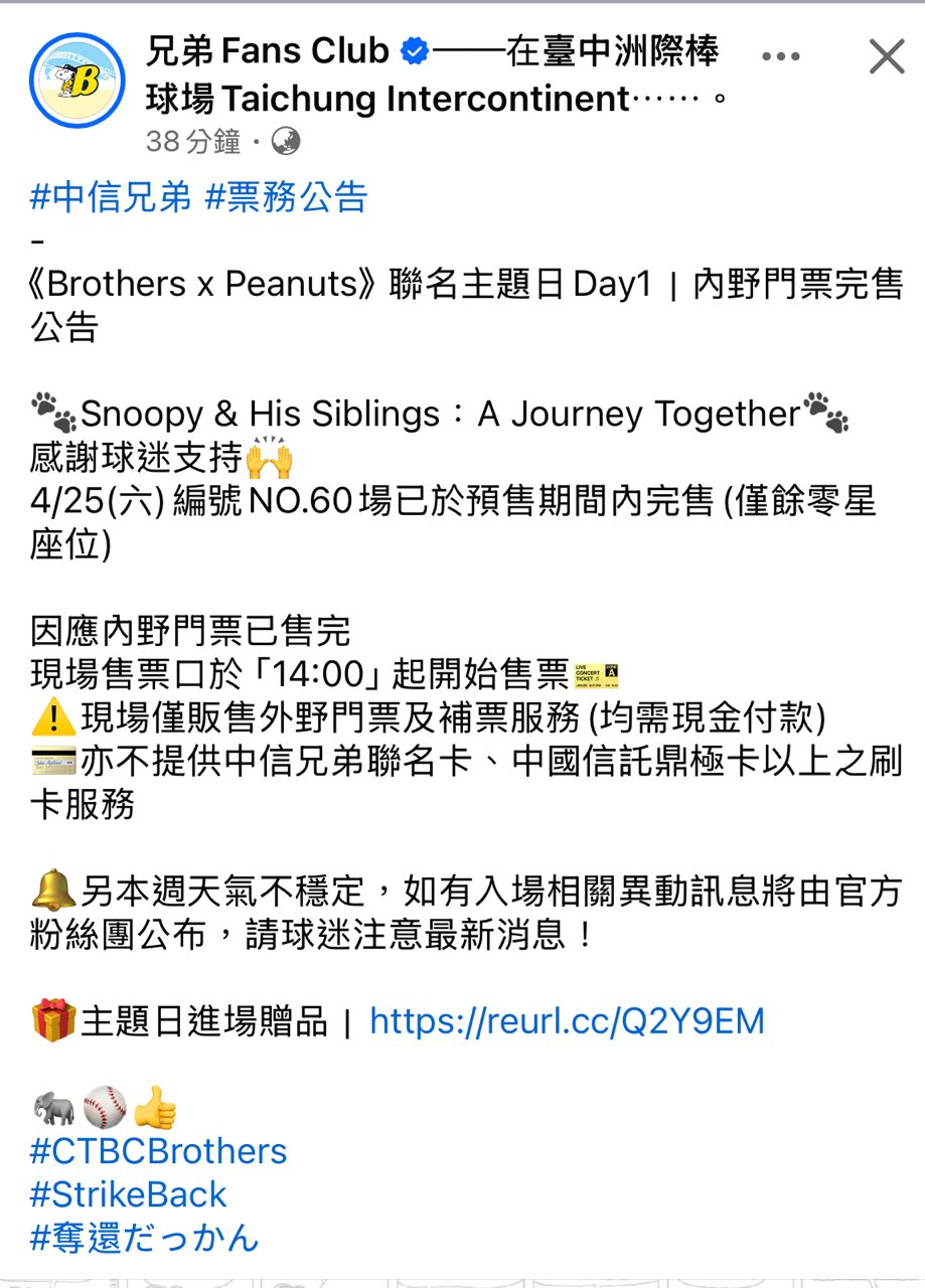 [閒聊] 洲際4/25票務公告