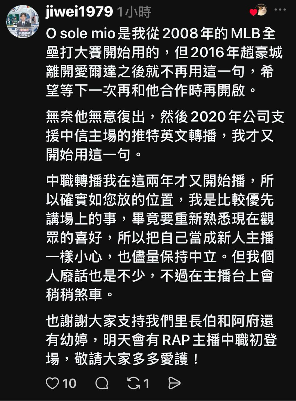 加上昨天聽祐廷主播上podcast提到他今年有在帶女主播播中職