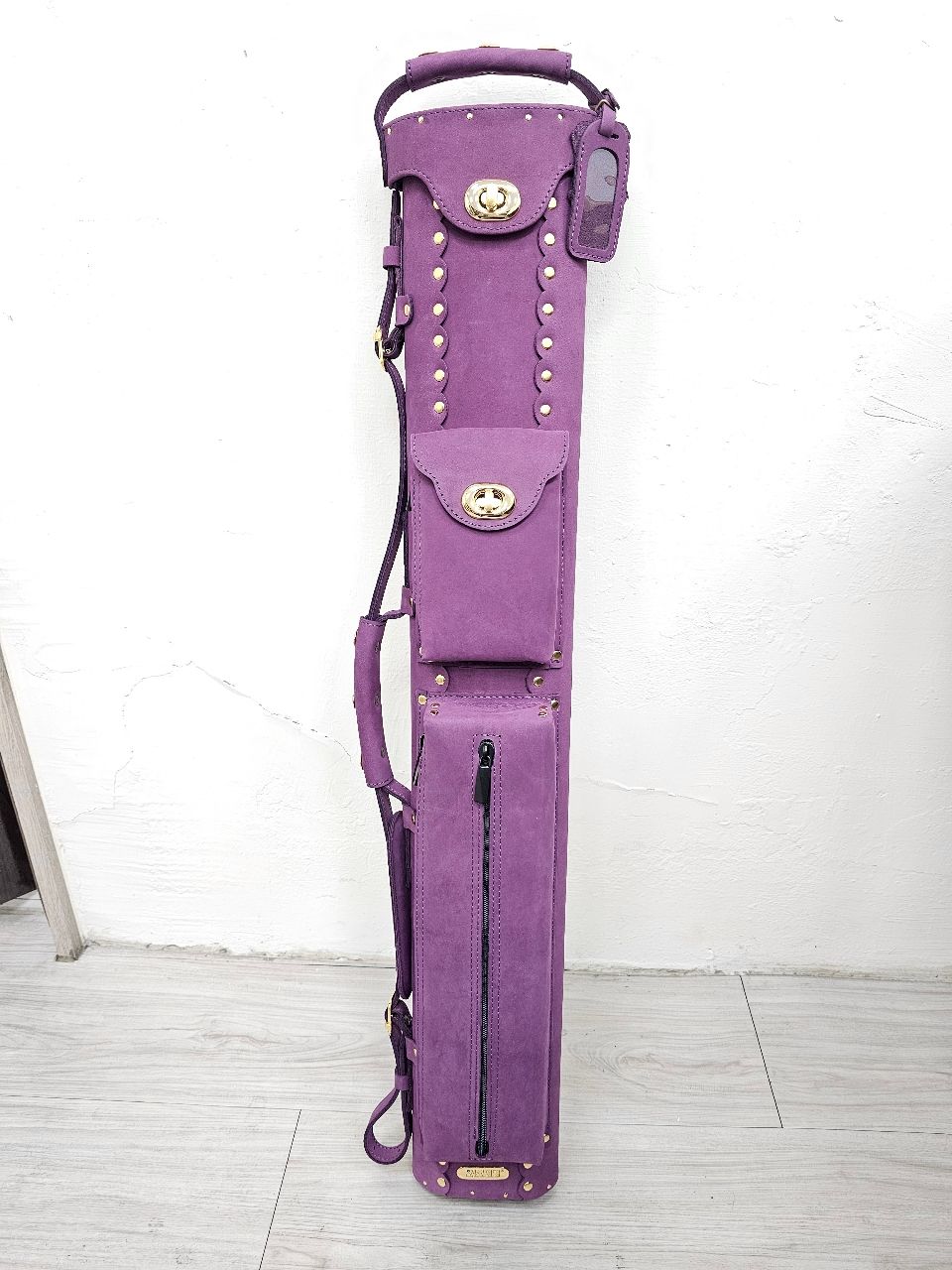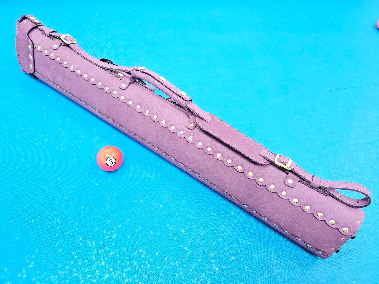 撞球桿林店長~大放送~賣全新進口真雞皮軟皮~桃紅樣式~6孔~金扣~纖維管球桶.漂亮.