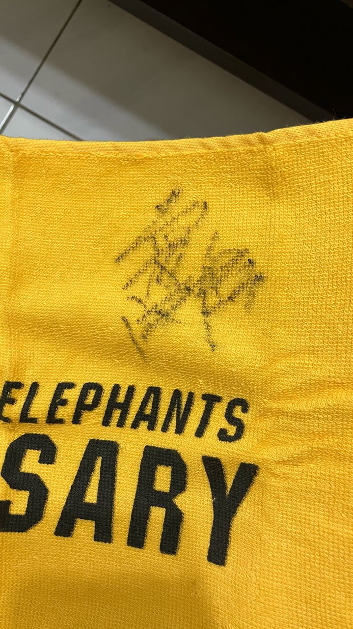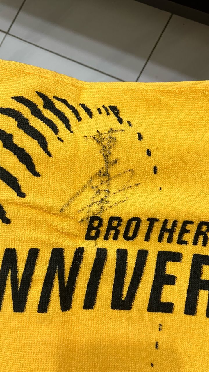 家裡翻出一條加油毛巾上面有兩個簽名