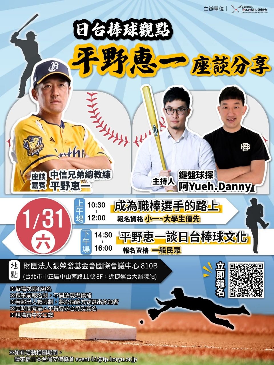 日本在台協會主辦《日台棒球觀點:平野恵一座談分享》,特別邀請中信兄弟總教練 #平