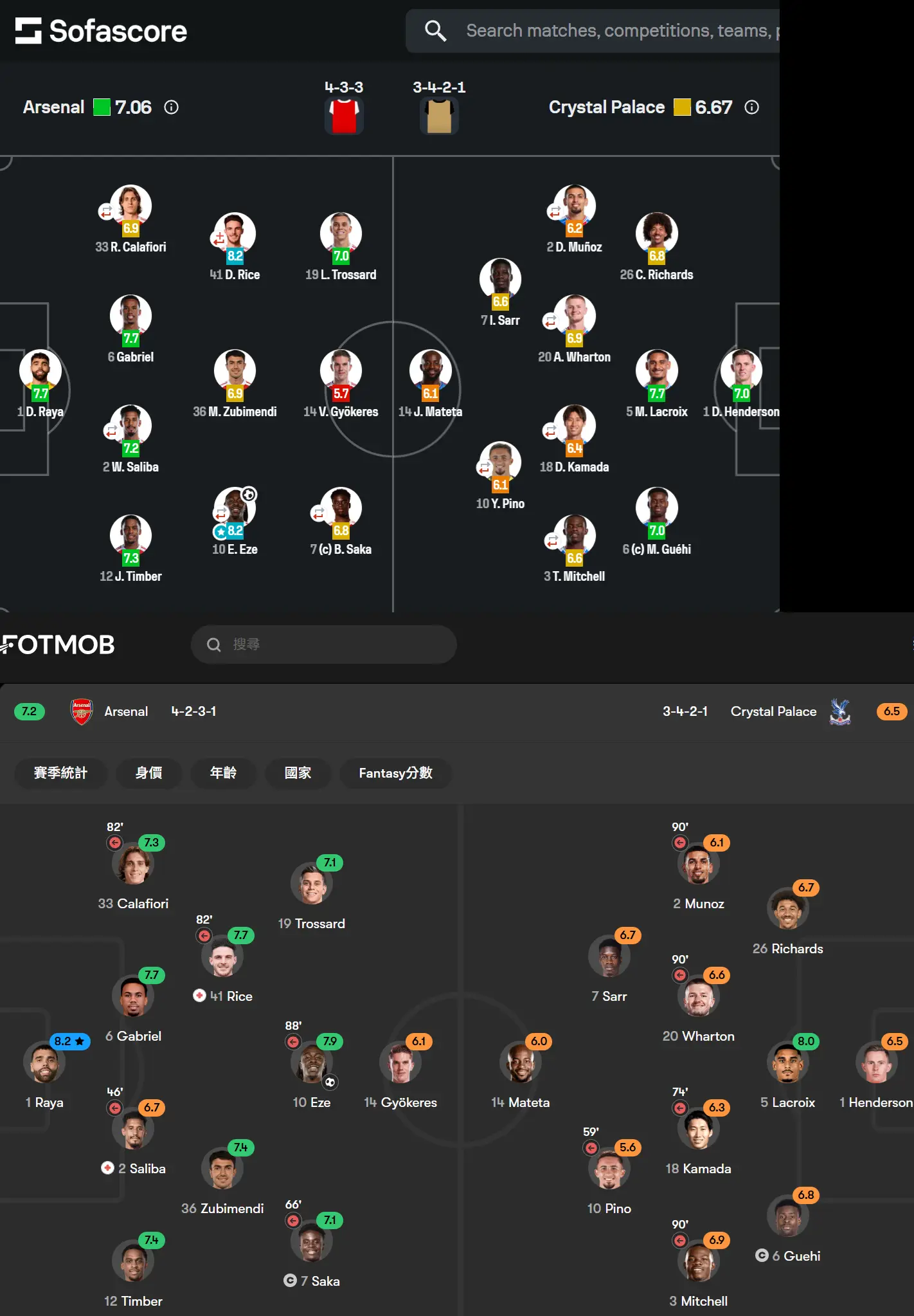 [英超] 兵工廠VS水晶宮@酋長球場