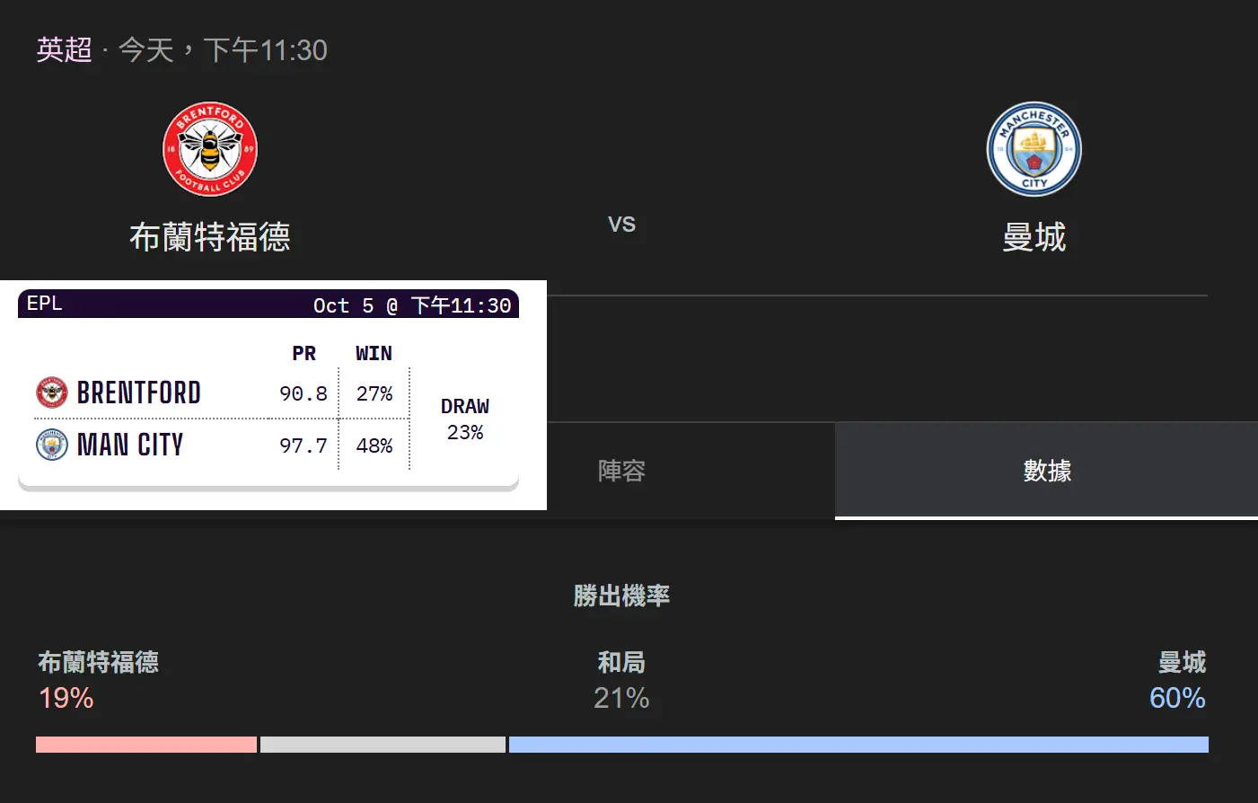 [英超] 布倫特福德 VS 曼城 @布倫福社區球場