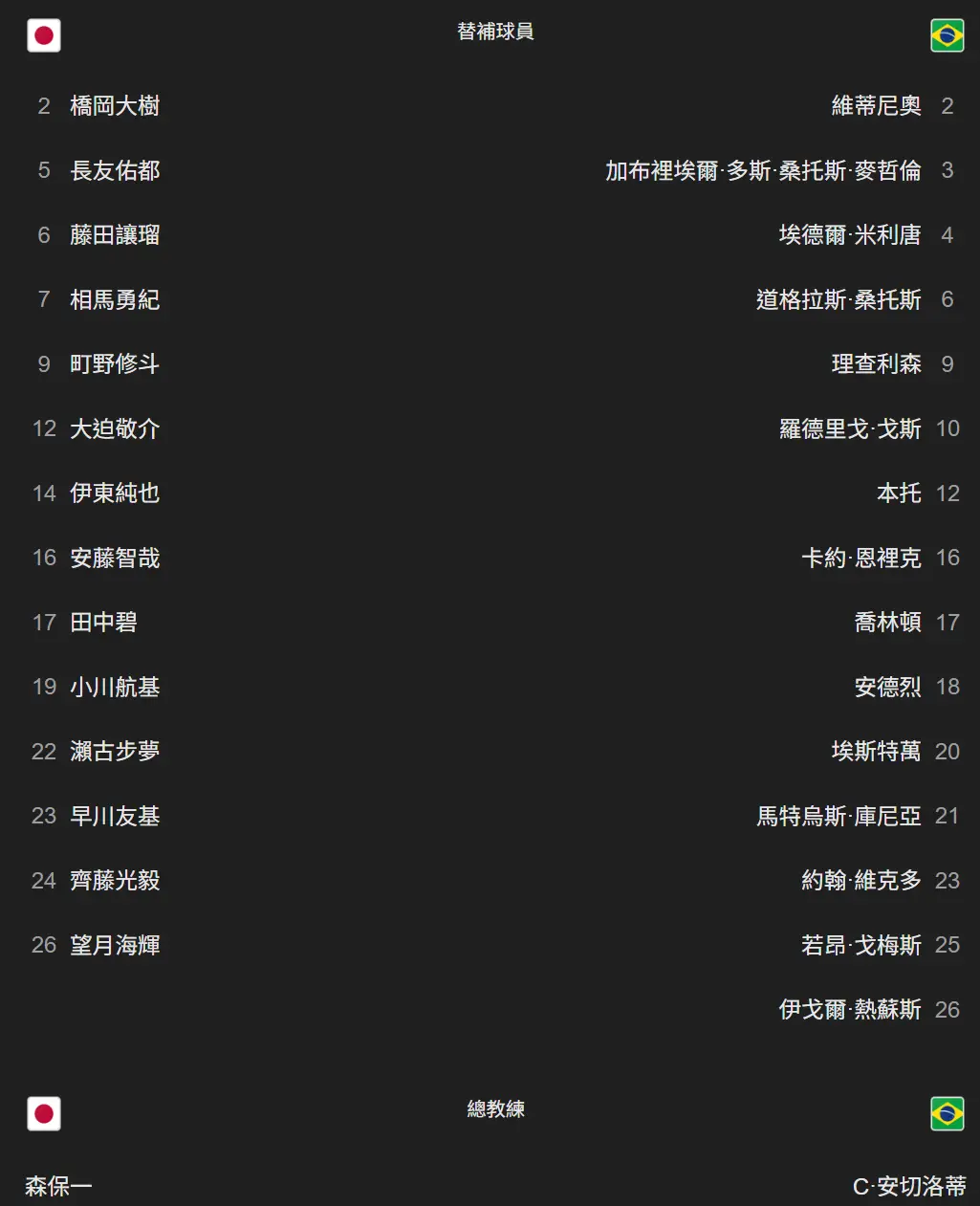 [LIVE] 日本vs巴西 國際友誼賽 18:30 ELTA2台