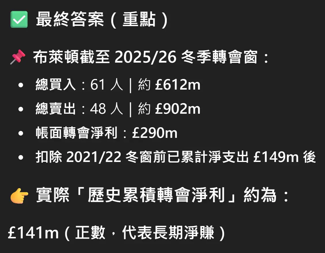 這篇新聞主要在講Guehi的所以只列出城的收支表