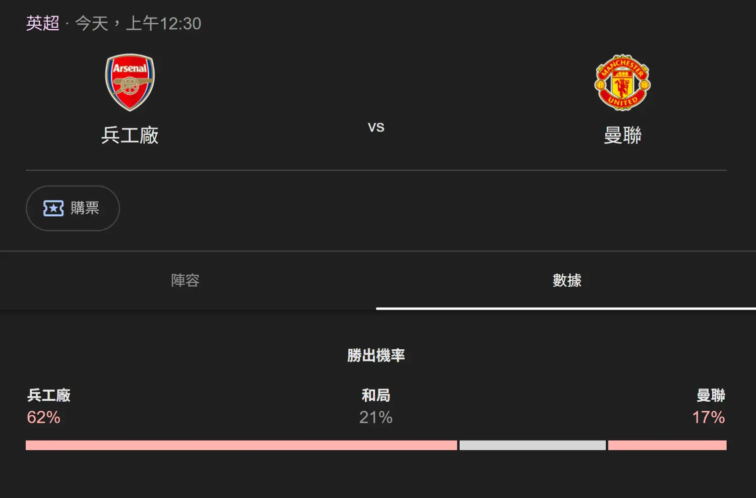 [英超] 兵工廠 VS 曼聯@酋長球場