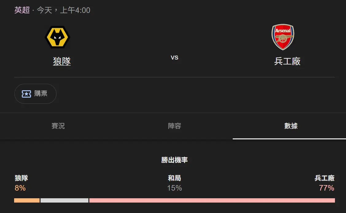 [英超] 狼隊 VS 兵工廠@莫利紐球場