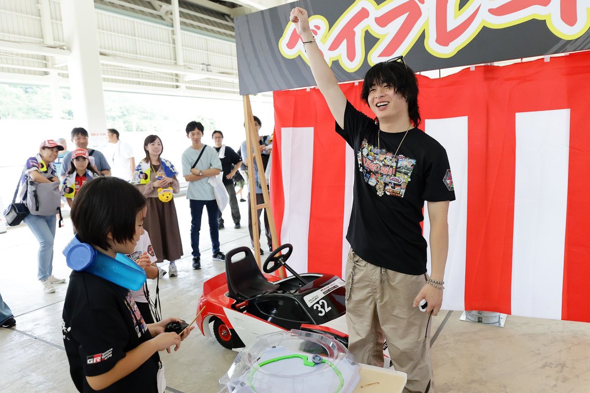大湯 在八月中的Super GT車手為主的 Toyota TGDA夏日祭也在跟小孩打戰鬥陀螺