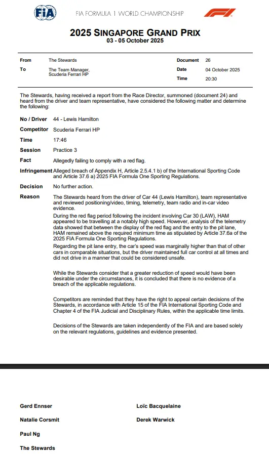 幹事裁決獨立於FIA之外,僅依據規則、準則及所呈現之證據作出。