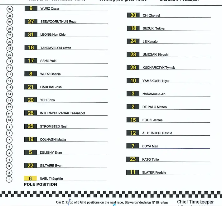 台灣車手: #75 尤翊豪(Toyota) 排第16, #15 王上元(Subaru) 無成績排第31