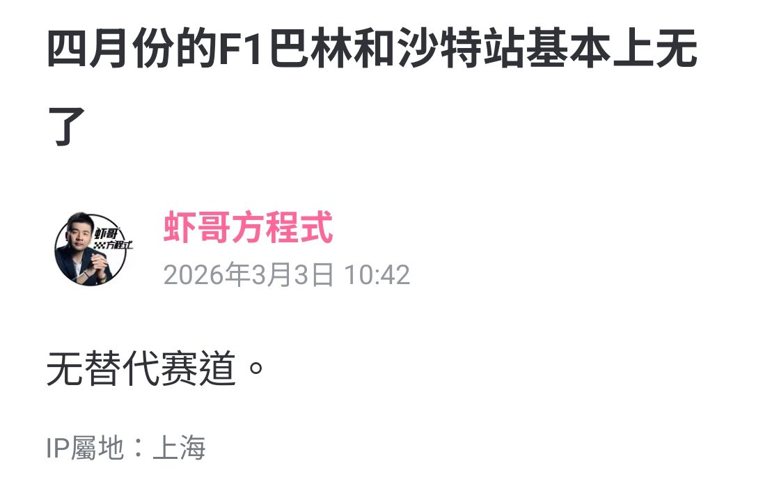 ※ 文章網址: https://www.ptt.cc/bbs/FORMULA1/M.1772507492.A.426.html