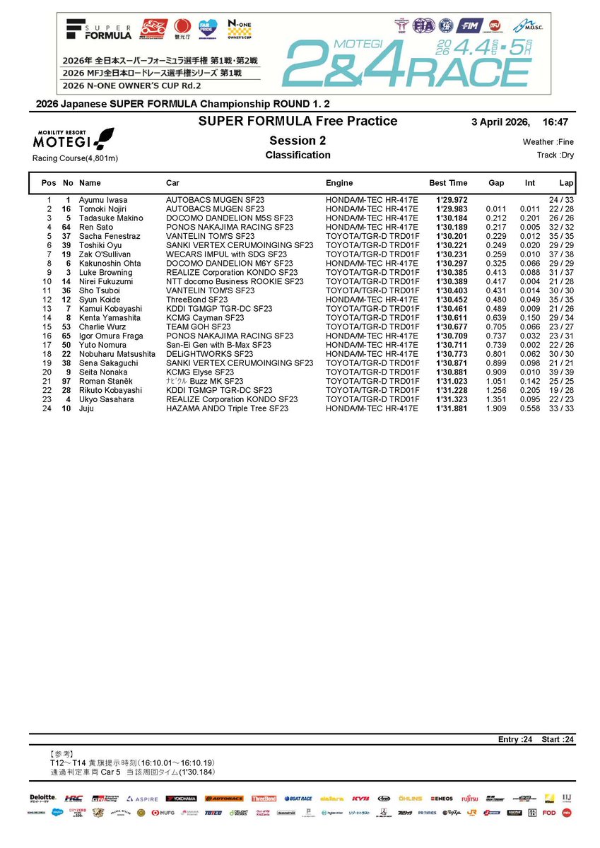 https://x.com/SUPER_FORMULA/status/2039913230840287562