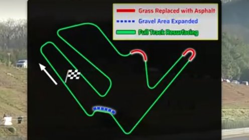 [全線路面重鋪, 紅彎路緣旁的草地緩衝區變瀝青緩衝區, 藍彎加大碎石緩衝區]