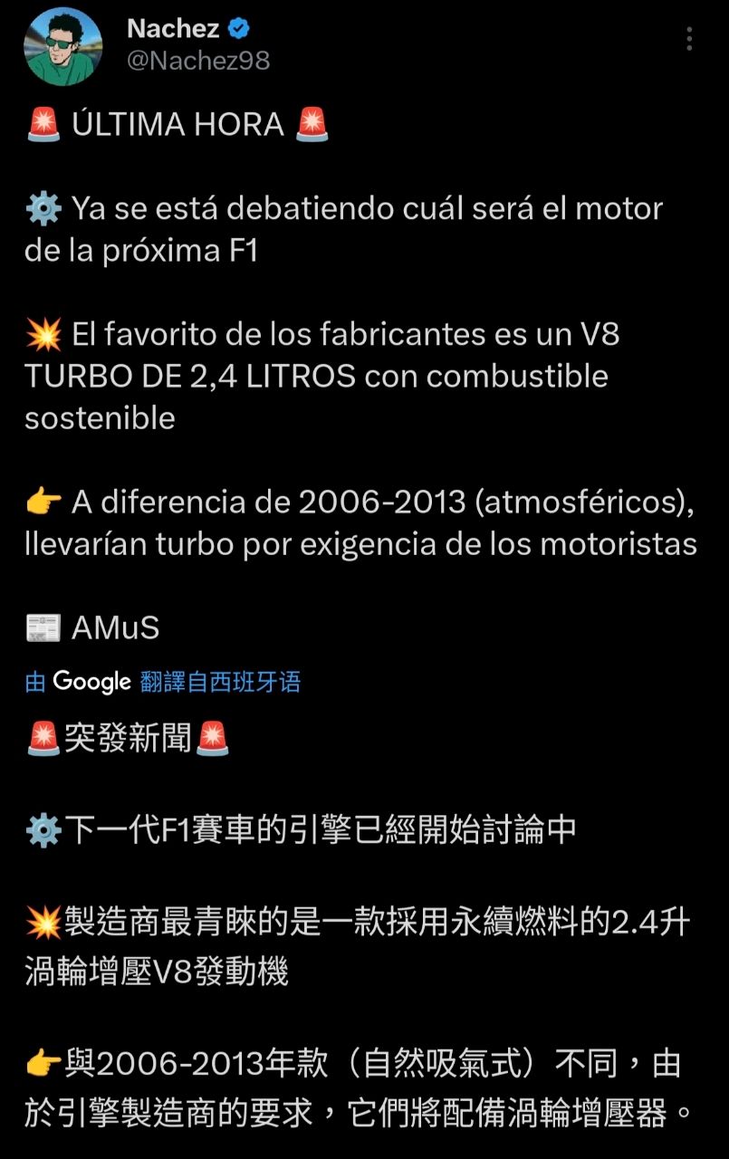 [情報] 下一代F1可能改回V8