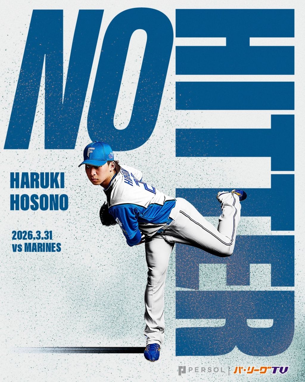 恭喜細野成為NPB史上第91人第103次達成無安打比賽的投手!