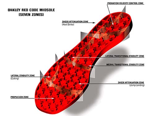 四、 球鞋的中底板選擇鞋頭低、後跟高: