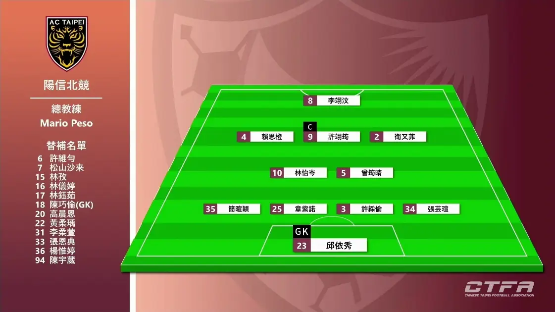 2025/08/23 星期六 6 15:30 女武神 1-5 陽信北競 台中西屯足球場