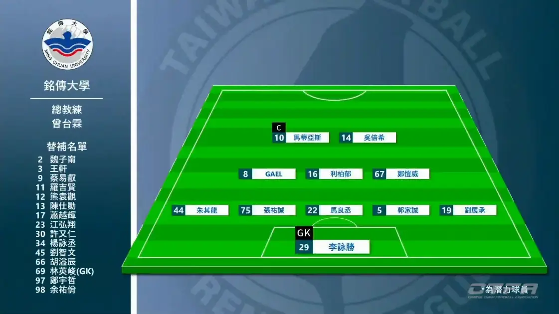 2025/09/14 星期日 9 16:00 銘傳大學 0-6 南市台鋼 臺北田徑場
