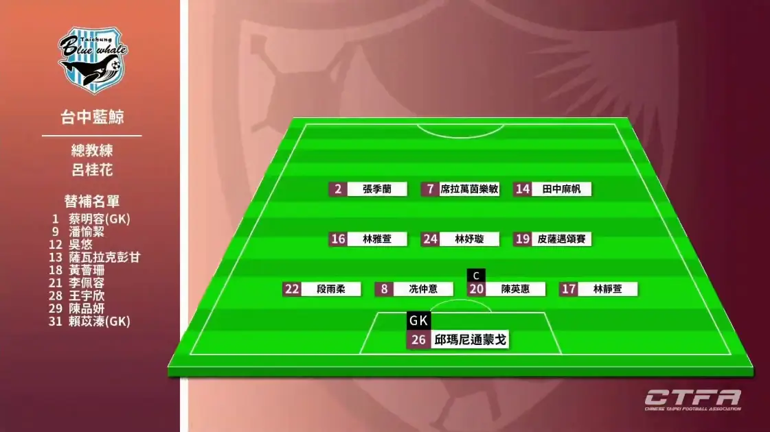 20 15:30 台中藍鯨 3-0 女武神 台中西屯足球場