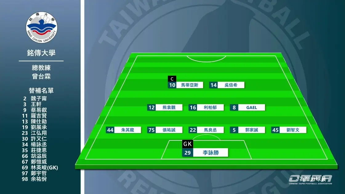 2025/09/14 星期日 9 16:00 銘傳大學 0-6 南市台鋼 臺北田徑場