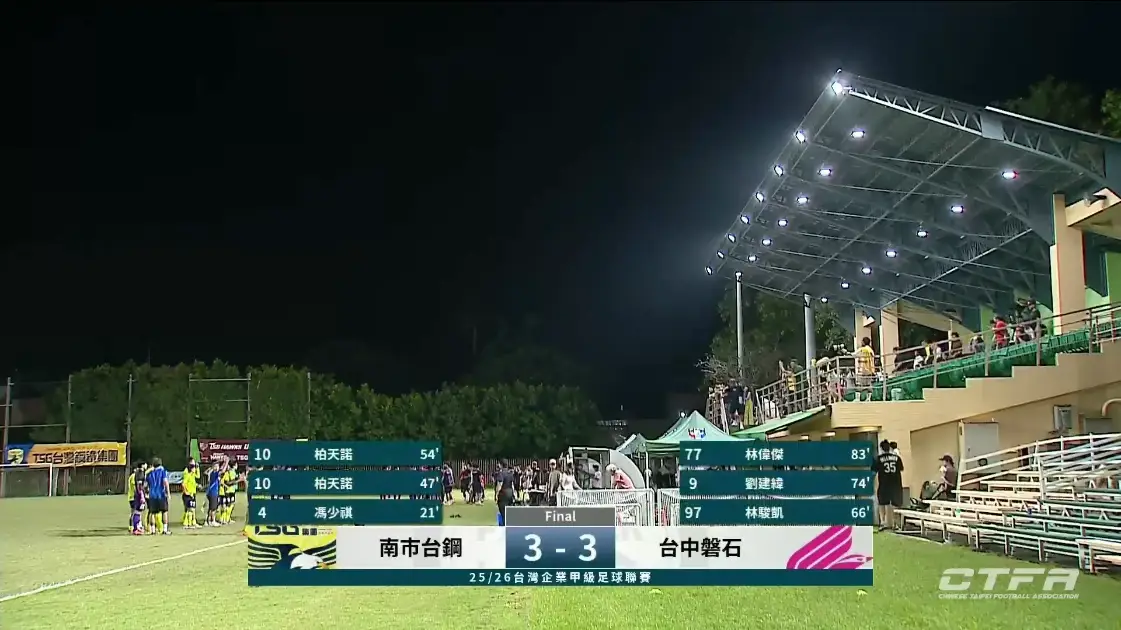 19 19:00 南市台鋼 3-3 台中磐石 台南市立足球場