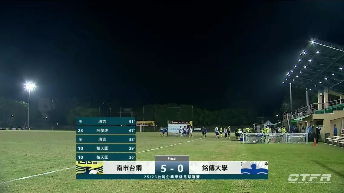 37 18:30 南市台鋼 5-0 銘傳大學 台南市立足球場