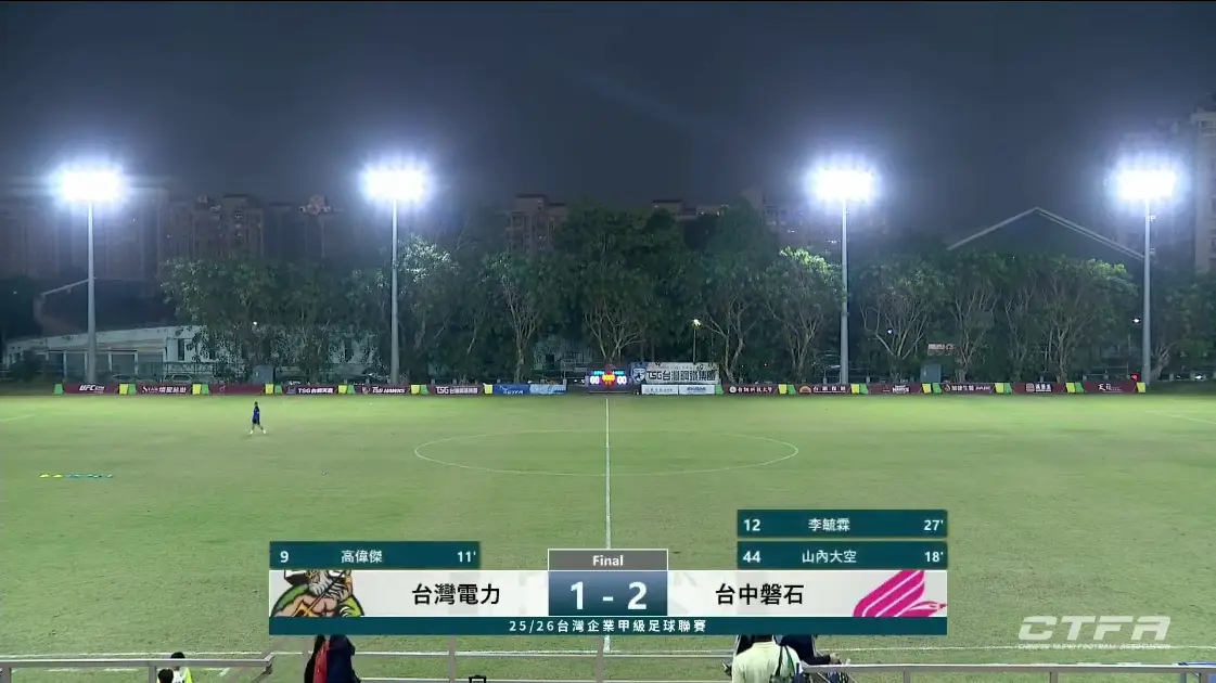 40 15:30 台灣電力 1-2 台中磐石 台南市立足球場
