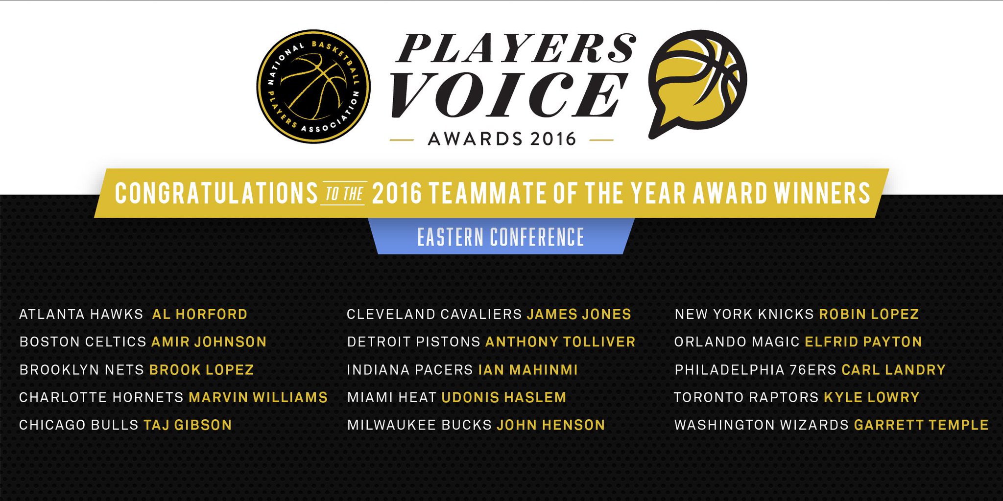 球員選擇獎的投票人只有NBA的球員自己,各個獎項的得主如下: