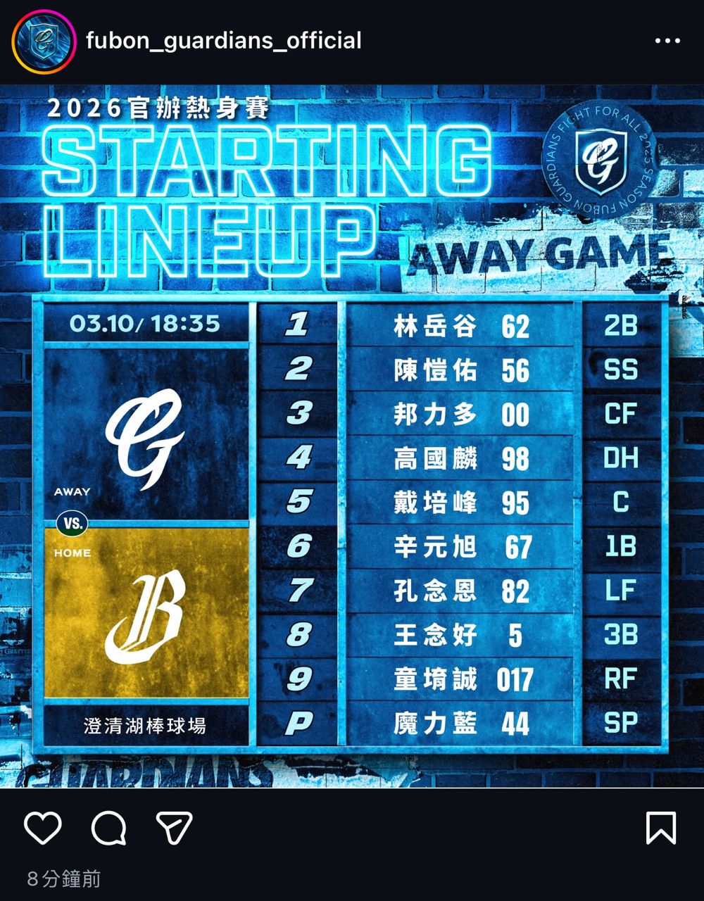 [分享] 今日先發(熱身賽)