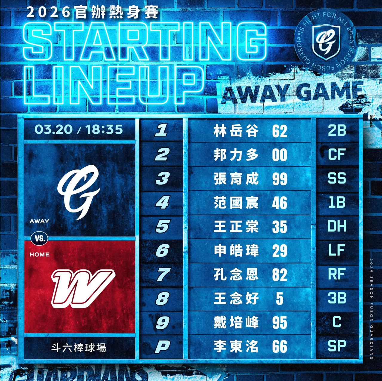 [分享] 今日熱身賽先發