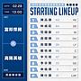 富邦. 1 張正偉 RF. 2 王正棠 2B. 3 胡金龍 LF. 4 林益全 DH. 5 范國宸 1B. 6 林哲瑄 CF. 7 辛元旭 3B. 8 方克偉 C. 9 陳凱倫 SS. 索沙 P. 統一. 1 張偉聖 CF. 2 邱智呈 LF. 3 吳桀睿 DH. 4 蘇智傑 RF. 5 陳重廷 2
