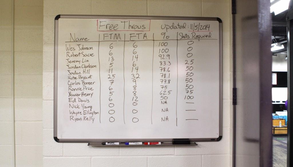 湖人目前照著球員的罰球命中率來給球員練習後加菜練罰球.