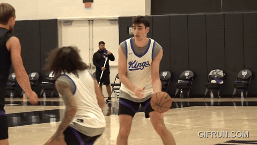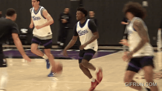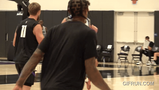 今天穿灰色的有Monk控球、Keon打2號、Nique打3號、Saric打4號、Drew Eubanks鎮守5號