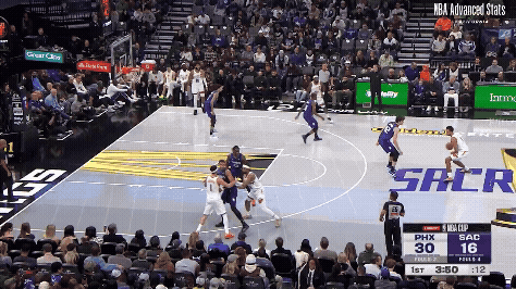 LaVine很明顯有先去干擾Gillespie,接著又想撲回去干擾另一個,但就是來不及補到