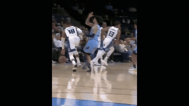 另外在Q1 8:32時,有灰熊球迷的飲料在Westbrook衝進觀眾席時整個被撞翻,