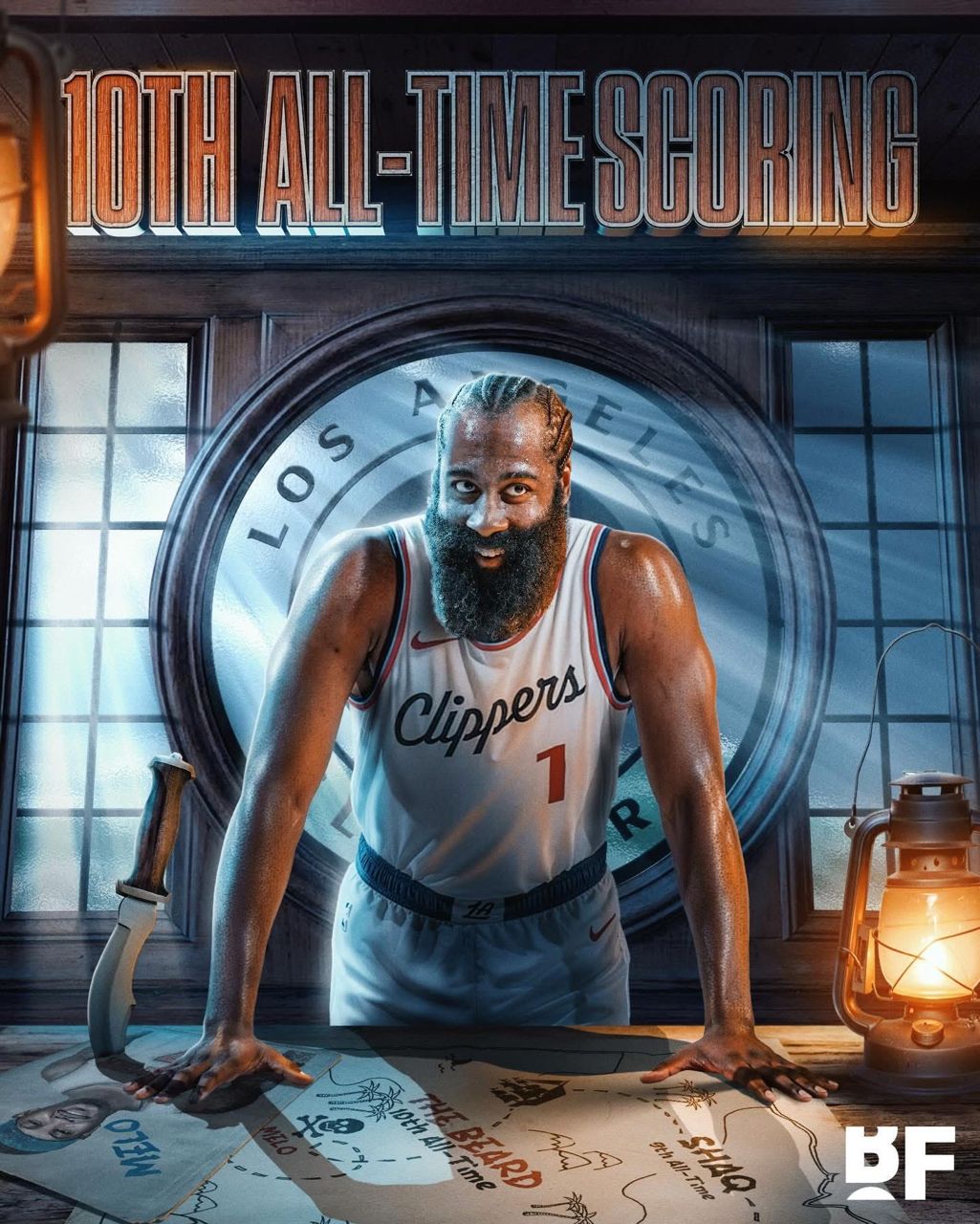 JAMES HARDEN HAS MOVED INTO THE TOP 10 SCORERS OF ALL-TIME
