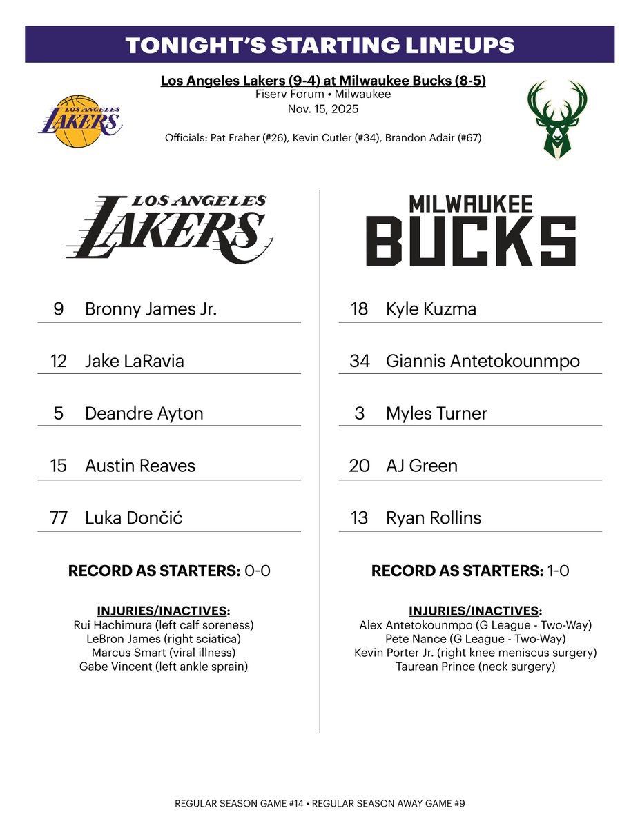 [LIVE] 湖人 @ 公鹿 (例行賽#14)